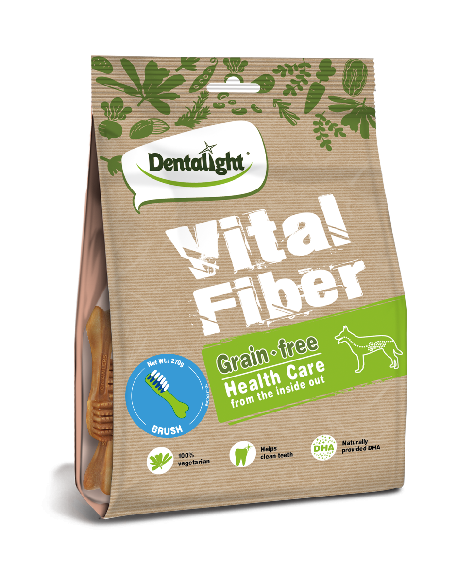 Choose Vital Fiber Brush&Wellbar Treats, Choose healthy care from inside out! Made with grain-free 100% vegetarian ingredients and added herb and algae for smart brain & smooth bowels.The Super-Tip bristles help to remove more plaque and stain. Extra longer-lasting, high fiber fomula is perfect for dogs who love to chew. Let your dogs' gut more happy!