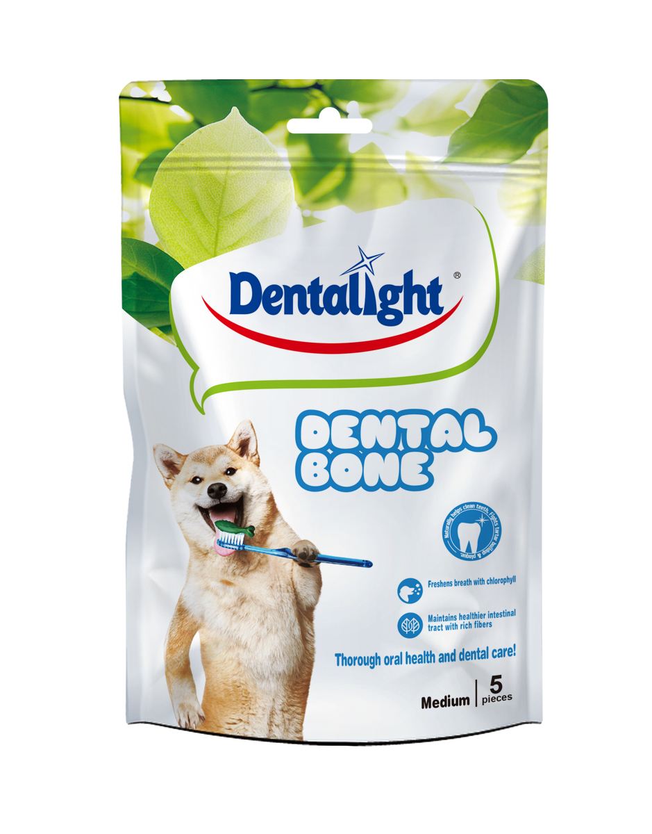 One Dentalight Dental Bone a day keeps dentist away! One Dental Bone a day is all it takes for clean teeth, fresh breath and a smile mouth. Your dog loves to sink their teeth into these delicious, original-flavor dental treat. Because they feature a delightfully chewy texture that fights plaque and tartar. Best of all, these natural dog treats are made with highly soluble ingredients that are easy to digest. Let's clean with our leaf!